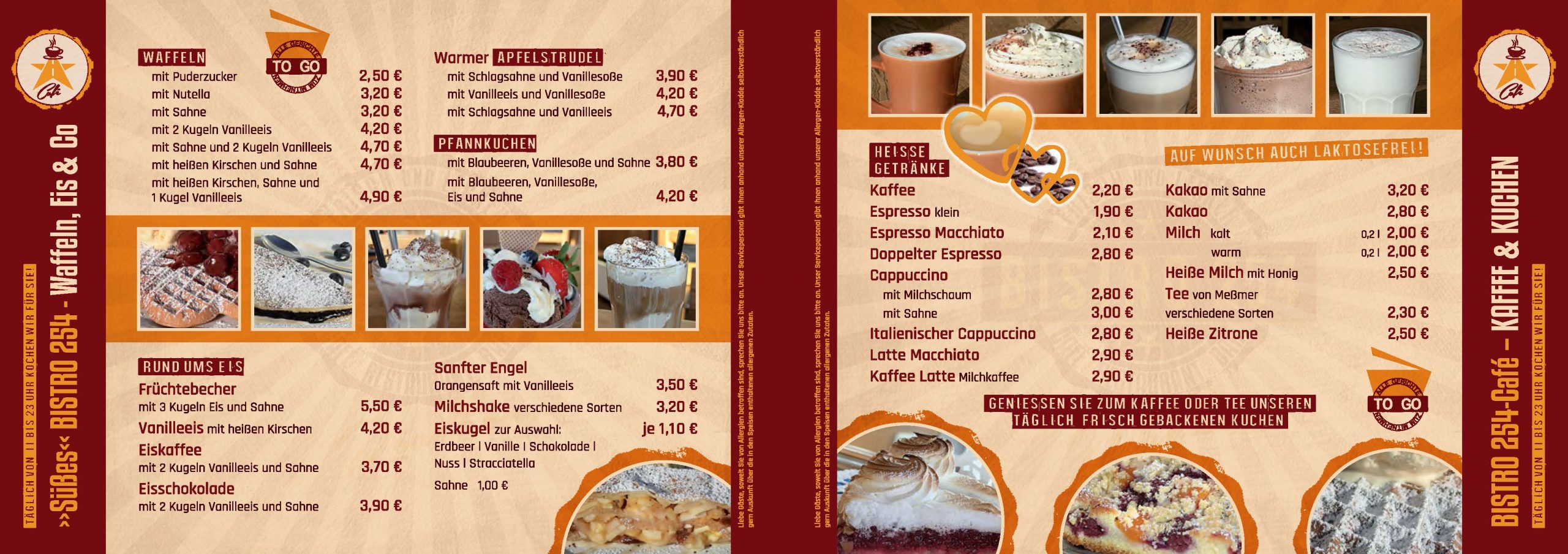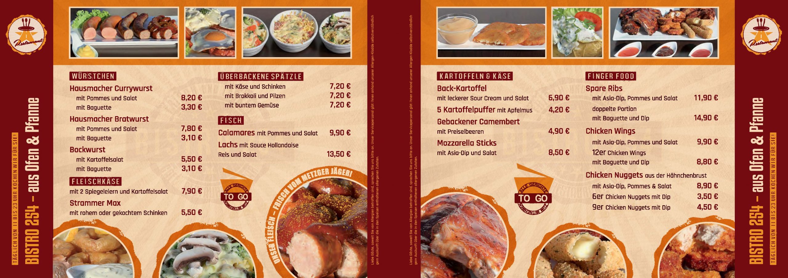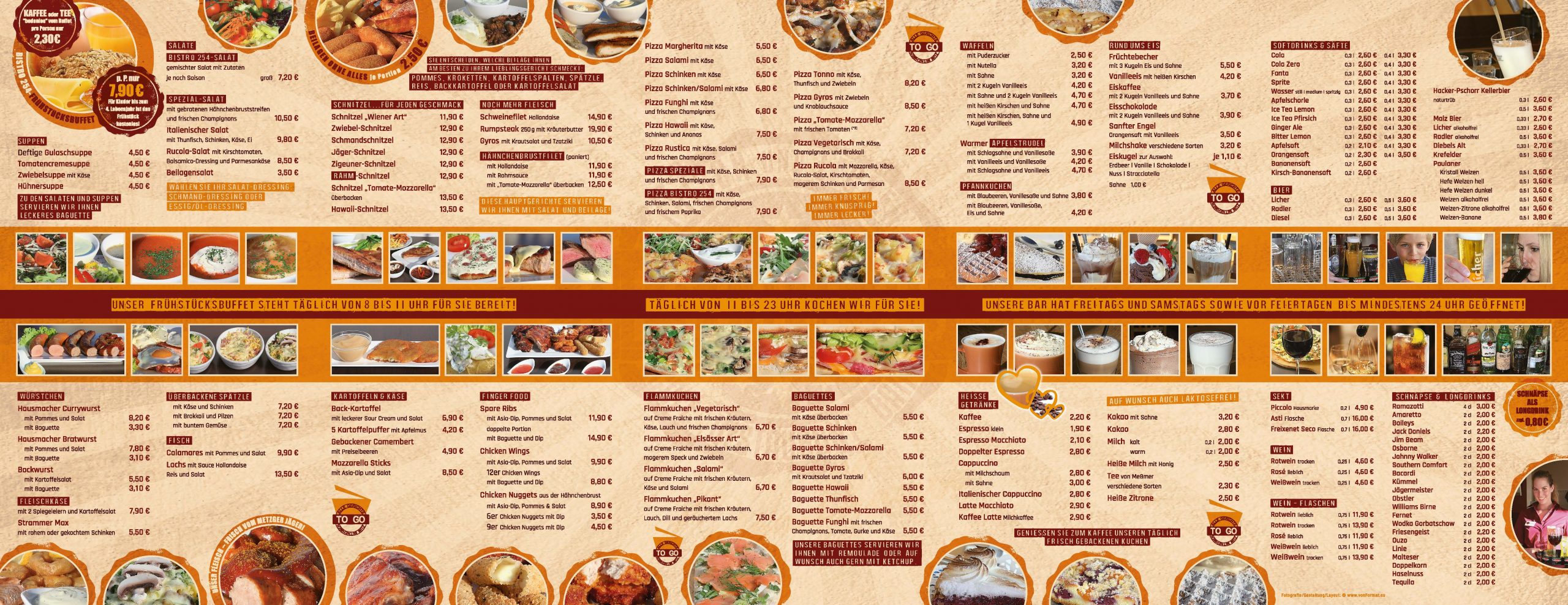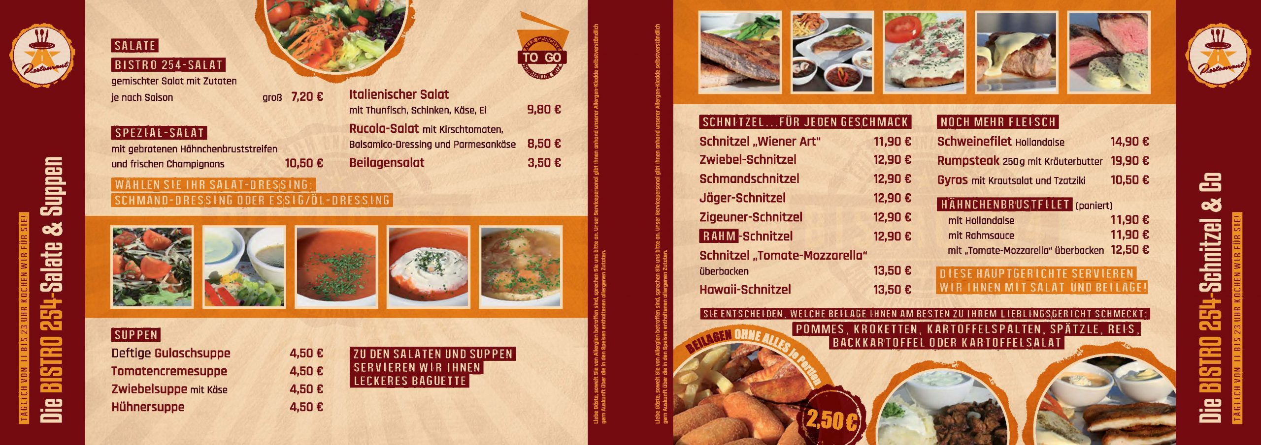 Speisekarte SchaukastenKonzeption | Umsetzung: Großformat für Schaukasten | Format 88 x 34 cm Bistro 254 Roadhouse Speisekarte to GoKonzeption | Umsetzung: Format DIN A6 | 12 Seiten Leporellofalz Idee Außenwerbung Großformat-HausschildKonzeption | Entwicklung | Umsetzung Bistro 254 Roadhouse - Außenwerbung Großformat-SchildKonzeption | Entwicklung | Umsetzung Autobeschriftung LogoUmsetzung SchneidebrettGlasschneidebrett ca. 40 x 30 cm Bistro 254 Roadhouse LogoKonzeption | Entwicklung | Umsetzung Bistro 254 Roadhouse ICONsKonzeption | Gestaltung Veranstaltung Großformat-AußerbannerAußenbanner-Plane | Format 450 x 80 cm Bistro 254 Roadhouse Logo | Speisekarten | Großformat-Außenwerbung